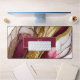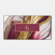Dieses fließende, alkoholische abstrakte Design Set ist der perfekte Ton für jedes Geschäft beruflich. Die hier gezeigte Schreibtischmatte in Weiß- bis Tiefweinrot mit glänzendem Gold ist eine Vorlage zum Hinzufügen von Monogramm und Namen. Suchen Sie die ID1018, um weitere Produkte mit diesem auffälligen Design, einschließlich passender Visitenkarten, zu sehen.