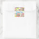 Danke, Aufkleber. Eine abstrakte Abbildung mit großen und kleinen Quadraten und Rechtecken mit Schnittlinien. Dieses kreative Design hat kontrastreiche Pastelltöne und Brillenfarben in Creme, Rose pink, Kalkgrün, hellbraun und hellblau.