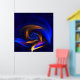 Lebhafte Farben abstraktes Formenposter, das als Fraktal geschaffen wurde, das wie ein gedrehter, energetischer Wirbel oder wirbelnder Wirbel aussieht. Es kann auch an eine abstrakte Fantasy-Blume mit einer spektakulären Corolla erinnern oder es inspiriere eine kosmische Rotation oder unbekannte Galaxie. Die Farbkombination basiert auf Farbtönen, die nicht sehr häufig gepaart sind, wie z.B. intensiv blau, orange, gelb und eine glatte Touch lila.