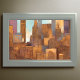 Abstrakte Aquarellmalerei Gold Citycape Lila Blau Das Seitenverhältnis ist 3:2. Es wurde als 36"×24", 24"x 16" oder 30"×20" gedruckt