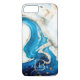 Schöne abstrakte Kunst mit blauen, weißen und goldenen Staubfarben in elegantem Marmor. Ein moderner, zeitgenössischer Maldruck mit einem modernen Monogramm-Schriftart, der Ihrem iPhone-Gehäuse ein besonderes Aussehen verleiht. Passen Sie die Schriftart- und Schriftart-Farben nach Ihren Wünschen an.