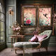 Abstrakte ätherische Blüten und Nelken Dekoupage Gewebe Papier. Nachricht. Für passende Projekte, besuchen Sie meinen Shop, um die kostenlose Version zu diesem Diptych-Set von 2 oder der horizontalen Landschaftsversion zu sehen.