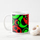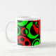 Ein spannendes und lustiges abstraktes Design aus kreisförmigen Blasen wie Formen in lebendigen kontrastierenden Rot und Grün mit Schwarz.