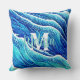 Abstrakte Blaue Ozeanwellen Mit Monogramm Kissen