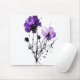 Ein lebendiges und ausdrucksvolles abstraktes Aquarellbild von zwei blühenden Blume. Die Blume sind in lila- und rosa Farbtönen gehalten, mit fett schwarzen Konturen und Spritzern, die ein dynamisches und dynamisches Ambiente schaffen. Die Gesamtkomposition ist modern und zeitgemäß.
