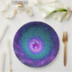 Eine bunte, ungewöhnliche Fantasy-Blume, abstrakte lila türkisfarbene Fraktal-Kunst, Design für Ihre runden Papier-Teller und mehr.