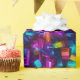 Schlag die Spannung hoch! Unser Geschenkpapier zeigt ein abstraktes geometrisches Buntglasdesign in lebhaften Neonfarben. Jede dieser Falten ist ein Schuss an Farbe und Kreativität, der Ihr Geschenk in ein Meisterwerk Illustration mit Ai, #generativecontent art, erstellt von ©WhimsicalArtwork™ Dieses ist Teil einer kompletten Geburtstagsparty Suite