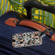Eine abstrakte Interpretation eines Camouflage Designs in einer Farbpalette von braun, schwarz, grau, beige, taupe und grün. Personalisieren Sie mit einem Initial.