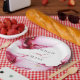 Teller DES BREITPARTEIBUCHS | Modernes Abstraktes Hochzeitsmotiv Deep Crimson Rosa Rot. Moody und ätherisch , diese schöne handgemalte Aquarellbild in tiefrosa- und kratzroten Farbtönen mit Goldfleck-Highlights - Handgeschriebene Schriftzeichen-Kalligraphie kombiniert mit einem minimalistischen, zeitgenössischen Schriftart. Ein trendiger und moderner Look für alle Jahreszeiten. Dies ist Teil einer Sammlung von Hochzeitsartikeln mit passendem Hochzeitszubehör. © Whimsical Artwork erstellt für den BarefootBride™