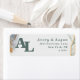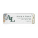 Moderne Abstrakte ätherische Aquarellfarbe Eukalyptus Grün Mit Monogramm Rücksendeadressen-Aufkleber. Dieses rustikale Design ist schön handbemalt mit reichen Farben, die perfekt für Sommer oder Herbst sind. Die Farbe Eukalyptus Wedding Color Palette zeigt Eukalyptus Green, Pine Dark Green, 24k Gold, Zaubertes Dunkles Navy Blau und Misty Mint Green. Mit Imitate Gold Metallic Glitzer-Folie Details, und einem wunderschönen Signatur-Script-Schriftart mit Schwänzen, die ätherische Aquarellfarben Hochzeitskollektion wird sicher Ihre Hochzeit unvergesslich und schön! Um mehr zu sehen, suchen Sie nach Chic Paperie's Hochzeitskollektionen 2021 für trendige Designs und Hochzeitsfarben Paletten für dieses Jahr.