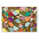 Ein Konfetti-Wandteppich aus Farben bildet dieses abstrakte Design. Hintergrund in Goldfolie.