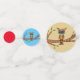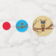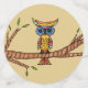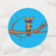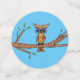 Dieser Tisch Konfetti hat eine abstrakte bunt Eule mit großen blauen Augen auf einem Baumzweig mit grünen Blätter sitzend. Große Kreise haben einen hellbraunen Hintergrund, mittlere Kreise haben blauen Hintergrund und kleine Kreise sind schlicht leuchtend rot.