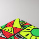 Eine abstrakte Stammeskomposition aus vielen Elementen in Grün, Rot, Schwarz und Weiß wird in diesem farbenfrohen abstrakten, gestreckten Leinwand-Design gezeigt.