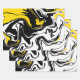 Dieses Design präsentiert eine auffallende Kombination aus Schwarz, Weiß und Gelb in einem abstrakten, fließenden Muster. Die Farbtöne verwoben sich in fett, fließenden Formen und sorgen für eine visuelle Wirkung. Schwarz und Weiß bilden eine einfarbige Basis, die Balance und Kontrast bringt, während das lebhafte Gelbe ein energetisches Highlight verleiht, das Aufmerksamkeit erregt. Die Gesamtkomposition ähnelt fließenden Bewegungen, erinnert an die Textur aus fließendem oder flüssigem Marmor und liefert eine moderne und edgy ästhetische Ästhetik.