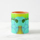 Ein buntes künstlerisches abstrakte mit einfachen Formen in Gelb, Rot, Blau und Grün. Es gibt Ebenen von Kreisen, Quadraten, Rechtecken, Kartons, Kugeln und verblassten Farbverlaufsfarben mit einem hellen sonnigen Rahmen. #coffeemug