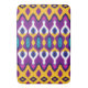 Ein nahtloses Muster mit einfachen, symmetrischen Formen in lila, gelb und blau