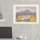 Holen Sie sich Ihre echte Goldfolie 18x24 Zoll mit einem pastellfarbenen, lila, lila Berg-, Meer- und Landschaftsbild mit Bäumen in goldfarbenen, glänzenden Tönen. Die Bäume haben einen Luxus-Stil mit der echten Goldfolie und sind schön für nordische Zuhause. Wählen Sie verschiedene Größen, weiße Umgebung. Entworfen von Hobinishop