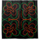 Orangefarbenes, grün und rot abstraktes Blumenmuster auf schwarzem Hintergrund