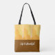 Eine Einkaufstasche, die in sanft hellgelber Farbe mit braunem Untergrund gestaltet wurde. Überraschen Sie Freunde oder Familienmitglieder auf ihrem besondere Anlass mit einer modernen Aquarelltasche. Einfache und elegante Design-Tasche ist ideal für Geschenke. Erweitern Sie Ihre Wünsche und Lieben, teilen Sie Ihr Glück mit einer Grusskarte.