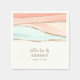 Diese einzigartige künstlerische Hochzeit oder Verlobung-Serviette mit modernem Design besticht durch abstrakte Aquarelltöne in gestreiften Schattierungen von Lehm, Pfirsich, Beige und Minzgrün. Schimmernde blonde goldene Linien teilen die Farbschichten, um schöne Details hinzuzufügen. Das Design ist schlicht und elegant, mit einem minimalistischen Look. Die Textfarben sind helltaupe braun, mit einem dunkleren Taupe braun vermischt, um die neutrale Farbpalette mit stilvollem Flair zu betonen. Personalisieren Sie die Textvorlage mit Ihrem Text. Dieses Design ist eine schöne Wahl für Hochzeiten und Veranstaltungen am Strand sowie für andere Orte.