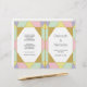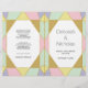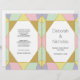 Abstrakter geometrischer Juwelstein in blassfarbenen Tönen zeitgenössische trendige Hochzeitsfeier und Party Programm. Dieses moderne Hochzeitsdesign zeigt Farbblöcke in hellrosa, minzgrün, hellgelb, lila und gold mit bedruckter goldfarbener Glitzer-Kontur. Wählen Sie das Wertpapier aus, da es sich gut faltet, und Sie müssen es halbieren.