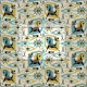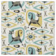 Meine originelle Vektorgrafik von abstrakten Katzen, Würfeln, Sternexplosionen, Boomerangs, Lozenges und vielem mehr, in Türkis, Gold, warmen Grau und Schwarz in Weiß/Bräune.