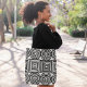 abstrakte Quadrat-Kreise wiederholen Musterkunst, die die Tasche noch attraktiver macht. Probieren Sie diese Tasche aus und teilen Sie Ihr Feedback.