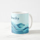 Abstrakte Wellen in Blau, aquamarin und Weiß auf hellblauen Untergründen bilden eine wunderschöne Tasse zum Thema Ozean.