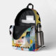 Rucksack mit einem farbenfrohen Kunstdesign. Die schwarz-weißen Details können nach Belieben im fortgeschrittenen Editor skaliert, verschoben oder gelöscht werden. Sie können das Label-Bild auch nach Ihren Bedürfnissen skalieren oder löschen.