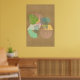 Die moderne Wandkunst zeichnet sich durch abstrakte Naturelemente (Blätter, Feder, Blume) auf kraftbraunem Hintergrund aus