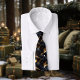auf schwarzem hemd eine attraktion. die druckqualität ist hervorragend, jedoch nicht zentriert wie in der vorlage, gibt der krawatte aber einen noch indiviuelleren touch