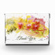 Schöne und abstrakte Farbspritze und Wirbel mit eleganten Orchideen in gelb-orangefarbenen und rosa Mitte. Künstlerische Farbkombination in Gelb, Grün, Orange und sanftes Rosa und ein Kalligraphieskript danke Ihnen. Anpassen, indem Sie den Text ändern oder auf Anpassen klicken, um Ihre eigene Touch hinzuzufügen.