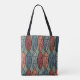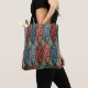 Diese Tasche hat ein kunstvolles Deko-Design von Ovalen mit abstrakten Designs innerhalb jeder in Retrofarben Rosa und Blau.