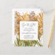 Werden Sie Ihre Hochzeitsfeier im Süden oder vielleicht am Strand abhalten? Unsere farbenfrohe Save the Date-Karte hilft Ihnen, die Szene mit einer abstrakten boho blumigen Anordnung von Pampas-Grasstalks in den Farbtönen Gold, Rose Gold und Grün Set. Die "Save the Date" Textseite ist Set in einem eleganten Skript-Schriftart und alle anderen Texte auf Vorder- und Rückseite der Karte können von Ihnen auf der Vorlage leicht personalisiert werden.