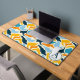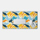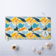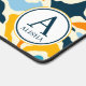 Abstrakte Blätter Zeitgenössisches Muster in Blau, Grün, Gelb und Rosa. Personalisierte Tabellenmatte mit Vorlage für Name und Monogramm. leicht editierbar
