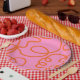 Abstrakte Pinselstriche in Rosa und Orange Pappteller