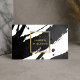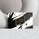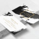 Inkalte, schwarze Pinselstriche schaffen einen abstrakten Hintergrund auf dieser Designerkarten-Vorlage. Ihr Name oder Firmenname wird in einer Goldbox in Imitate auf der Vorderseite für eine moderne Ästhetik angezeigt. Diese doppelseitige Karte ermöglicht Ihnen viel Platz auf der Rückseite für Ihre Kontaktdaten. Eine lustige, auffällige Karte für kreative Profis. Kunst und Design © 1201AM Design Studio | www.1201am.com