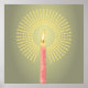 Diese abstrakte Posterwandkunst zeigt eine Kerze aus winzigen Quadraten und Lichtstrahlen, die aus Quadraten und Dreiecken bestehen. Es ist eine Darstellung von Licht und Hoffnung.