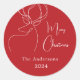Roter Hintergrund und ein weißer abstrakter Rentier. Personalisieren und fügen Sie einen Namen und ein Jahr. Text: Frohe Weihnachten