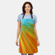 Abstrakte rote, orangefarbene Streifen auf blau Schürze