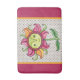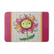Eine rot-rosa Polka gepunktete Badematte mit farbenprächtigem Zentrum, die die Sonnenblume lächelt