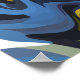 Dieses Design zeichnet sich durch ein abstraktes Muster mit mehreren Farben aus, darunter Blau, Gelb, Weiß und Schwarz. Die Formen des Designs verflechten sich in einer gewundenen und kurvenreichen Weise und erzeugen so einen dynamischen und flüssigen Effekt. Dieser Stil suggeriert Bewegung und Fluss und ruft ein Gefühl abstrakter Kunst hervor, das Gefühle oder Ideen indirekt vermittelt, ohne erkennbare oder definierte Formen zu präsentieren.