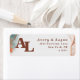 Moderne Abstrakte ätherische Wasserfarbe Terra Cotta Mit Monogramm Rücksendeadressen-Aufkleber. Dieses rustikale Design ist schön handbemalt mit reichen Farben, die perfekt für den Herbst sind. Die Farbpalette der Terracotta Wedding Color zeigt: Terra Cotta Burnt Orange, Verde Dark Green, Dusty Light Pink, Sienna Rich Brown und Beige. Mit Imitate Metallic Glitzer Folie Details und einem wunderschönen Signatur-Script-Schriftart mit Schwänzen, die ätherische Aquarellfarben Hochzeitskollektion wird sicher Ihre Hochzeit unvergesslich und schön! Um mehr zu sehen, suchen Sie nach Chic Paperie's Hochzeitskollektionen 2021, um mehr trendige Designs und Hochzeitsfarben für dieses Jahr zu sehen.
