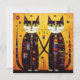 Abstrakte Unternehmen: Eine Geschichte von zwei Katzen. Dieses Kunstwerk zeigt zwei kranke Gefährten in einer strahlenden Umarmung. Die geometrischen Akzente und die goldenen Farbtöne rufen ein Gefühl zeitloser Schönheit und Einheit hervor. Sie sind mit komplizierten geometrischen Mustern geschmückt und symbolisieren Harmonie. Ihre durchdringenden Augen und die durcheinander gezogenen Pfoten laden den Betrachter in eine Welt ein, in der Kunst auf Emotionen trifft.