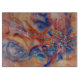 Ein abstraktes Aquarelldesign, eine schöne, dunkelorange und blaue Feier, eine Collage von Konfetti-Juwelen, die sich vom Zentrum eines kobaltblauen abstrakten Pinrads ausbreiten. Die Stücke von Konfetti fangen das Licht und funkeln wie Schmuck in der Glasstruktur des Schneidbrettes. Es ist sehr hübsch von der Oberseite mit der cremefarbenen Unterseiten-Beschichtung des Schneidbrettes, die durch die.