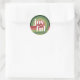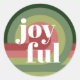 Moderne Klassik Weihnachtsfeiertage Umschlag Aufkleber-Label mit hellgrün und dunkelgrün, rosa und rot abstrakten Mustern und JOYFUL Wunschtext in knalligem Weiß.