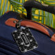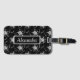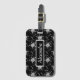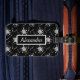 Dieses Gepäckanhänger sieht modern und elegant aus und kann personalisiert werden, indem der Name auf der Vorderseite des Tags geändert wird. Das Design ist abstrakt mit Blume der weißen Linien, Lackierungen und Schnörkel auf einem schwarzen Hintergrund.