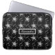 Dieser Laptop-Ärmel hat ein lustiges Muster und kann durch Namensänderung personalisiert werden. Dieses abstrakte Muster besteht aus weißen Linien Blume auf schwarzem Hintergrund, die gleichzeitig modern und elegant wirken.