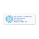 Eine abstrakte Malerei einer Blume des blauen Lotos, durch Cheryl Paton, wird auf kundenspezifischem Rücksendeadressen-Aufkleber gedruckt. Der Text kann auf der Schablonenform leicht geändert werden.