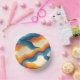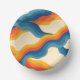 Abstrakter 70er Retro Orange Blue Wavy Strip Muste Pappteller
